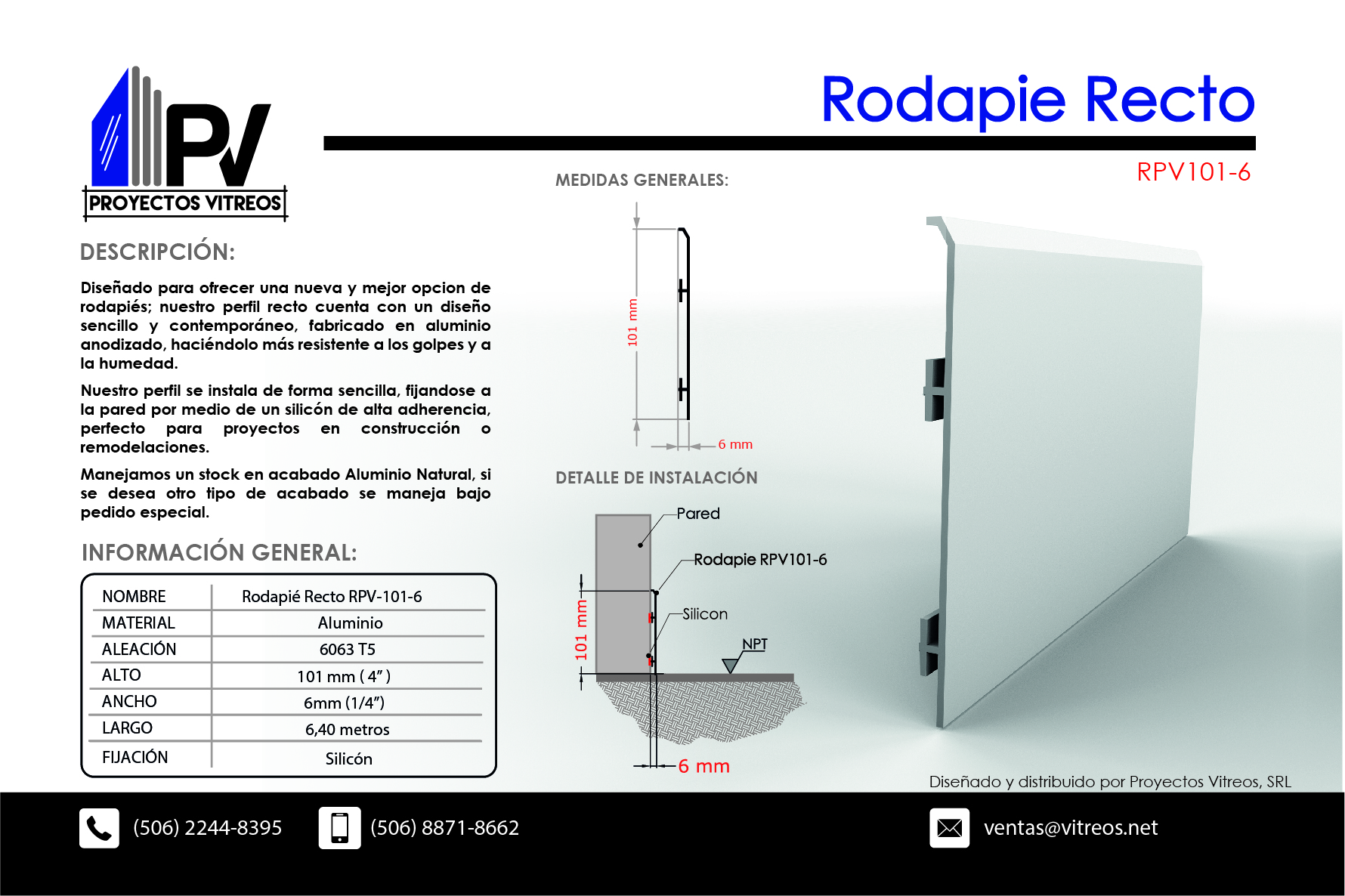 Contamos con diseños exclusivos de rodapiés en aluminio anodizado y acero inoxidable. Además de umbrales acústicos.